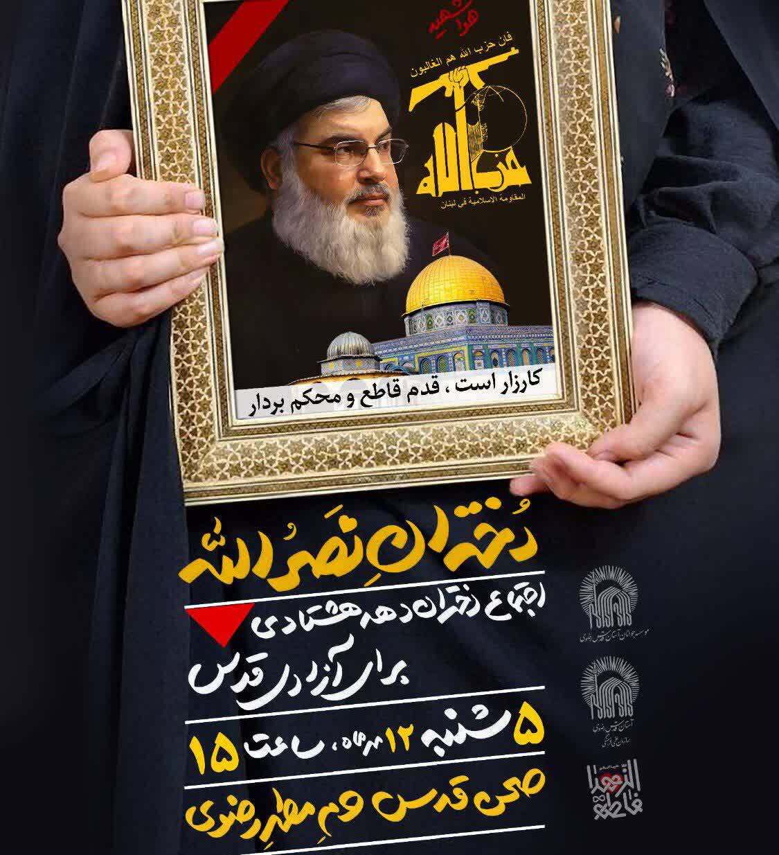 دختران دهه هشتادی ضمن تسلیت و گرامیداشت شهید سید حسن نصرالله به عنوان فردی خود ساخته، مجاهد و الگوی نسل جوان برای آزادی قدس شریف مورخ پنجشنبه ۱۲ مهرماه ساعت ۱۵ واقع در صحن قدس حرم مطهر رضوی گرد هم می‌آیند.
